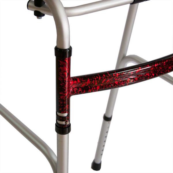 Рама ходунков выполнена из анодированных алюминиевых трубок, которые покрыты лаком для защиты от коррозии и повреждений. Конструкция складная и имеет надежную фиксацию, обеспечивающую безопасность в процессе ежедневной эксплуатации на протяжении длительного времени.