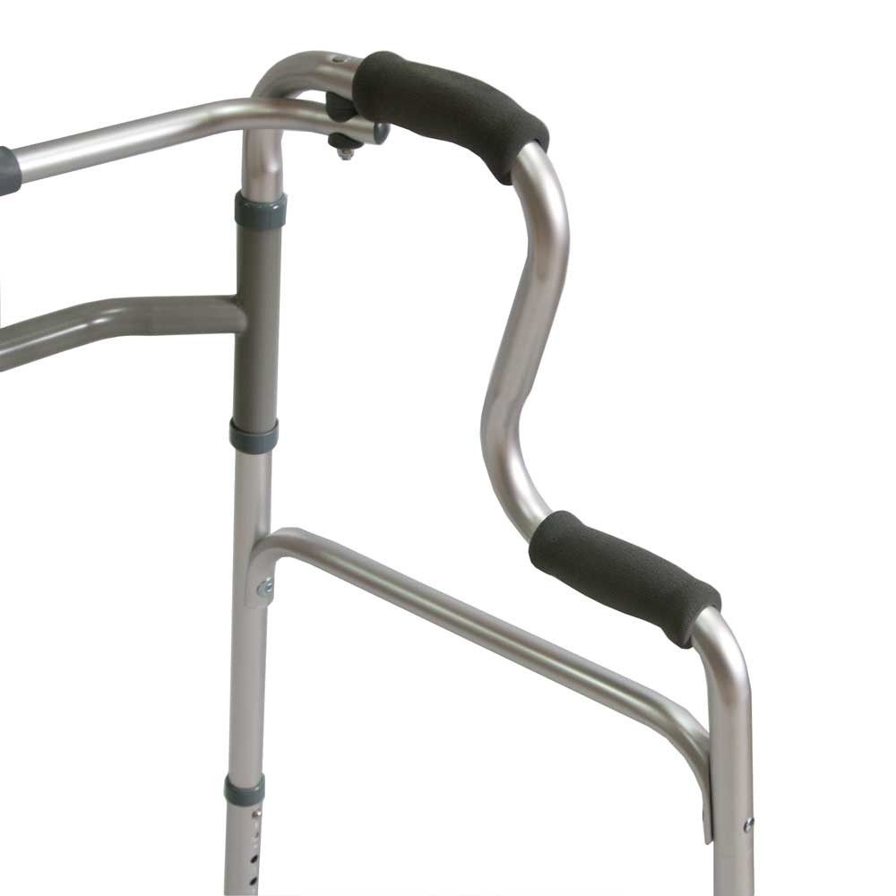 Опорные поручни ходунков выполнены из анодированного алюминия и не подвергаются коррозии, соединяющая рама — из стали с полимерным покрытием. Ходунки легко складываются и не занимают много места, имеют 8 положений регулировки высоты с шагом в 2.5 см. Мягкие накладки на поручнях ходунков не дают рукам скользить; резиновые наконечники, расположенные на опорах, предохраняют от скольжения по твердым поверхностям.