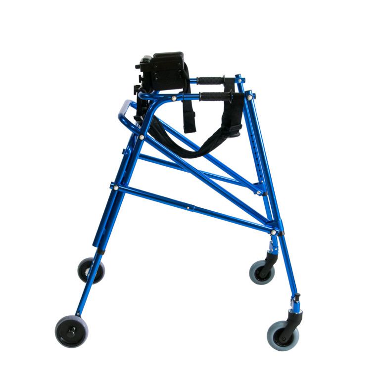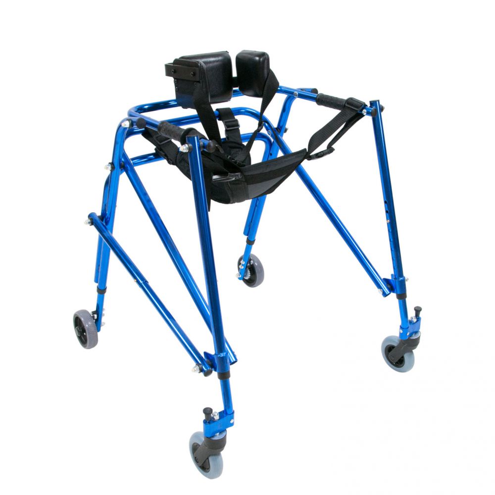 Ходунки на четырех колесах реверсивного типа предназначены для детей-инвалидов, страдающих различными формами ДЦП, способствуют устранению нарушений осанки и патологической установки стоп, помогают удерживать равновесие при ходьбе и стоянии. Ходунки поставляются для детей-инвалидов с различными антропометрическими данными в 4 типоразмерах.