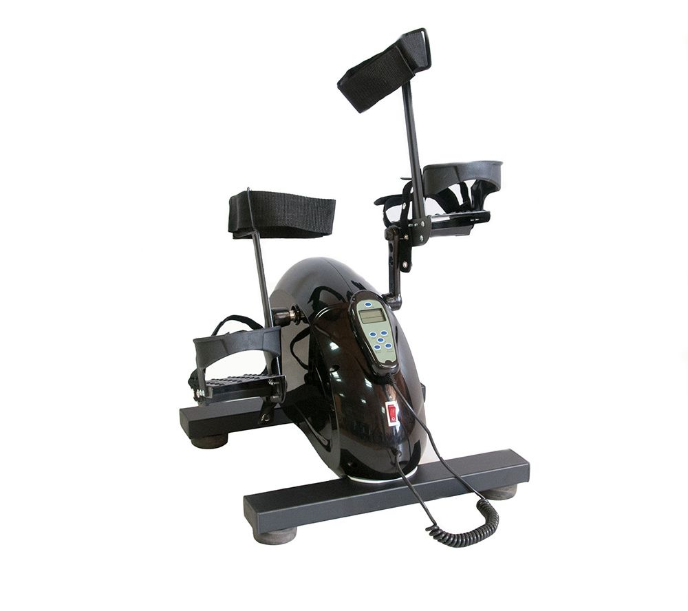 Велотренажер с электродвигателем предназначен для разработки рук и ног с помощью вращательных упражнений. Педали в тренажере крутятся самостоятельно с помощью электромотора.