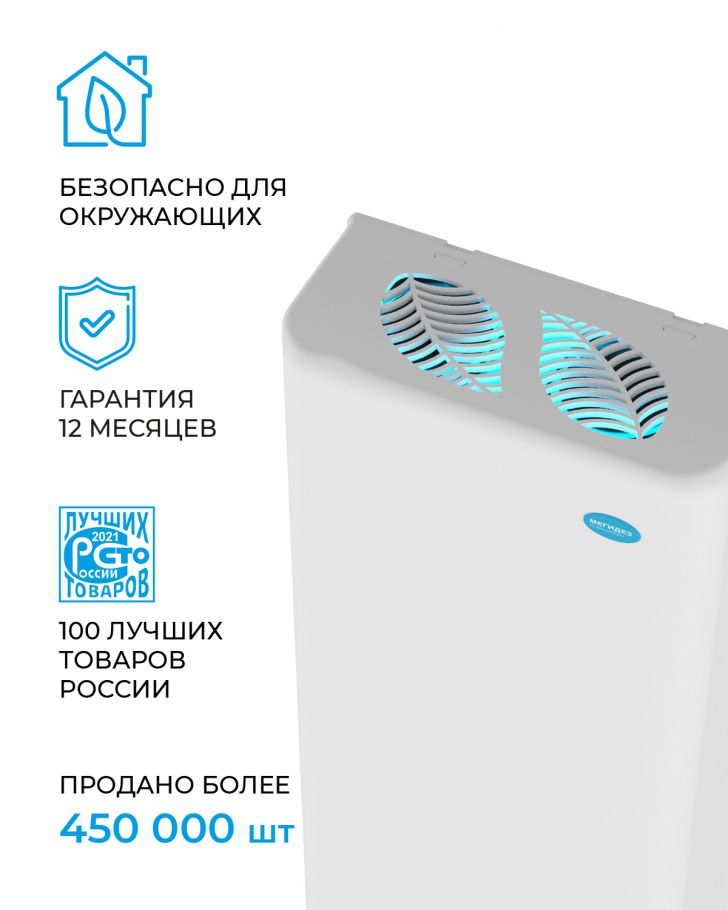 Рециркулятор МЕГИДЕЗ 3913.1Б оснащен тремя бактерицидными УФ-лампами с общей мощность 45 Вт. Подходит для размещения в доме, квартире, офисе, в торговых помещениях и в помещениях медицинского назначения до 50 м³, кроме операционных и стерильных зон. Рассчитан на площадь до 30 кв.м. В периоды эпидемий и при большом скоплении людей, рекомендуем включать прибор на 3 часа и более.