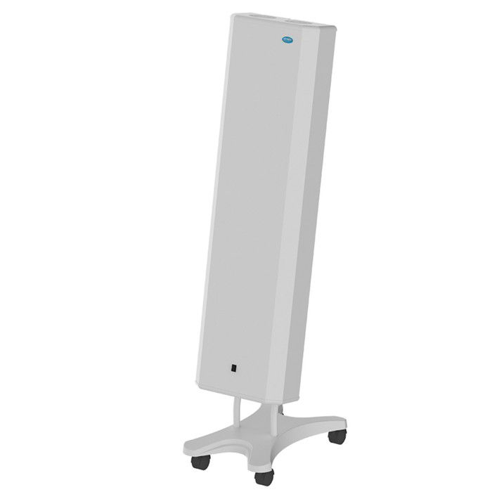 Рециркулятор МЕГИДЕЗ 908.1 на пластиковой передвижной платформе, оснащен тремя бактерицидными УФ-лампами с общей мощность 90 Вт. Подходит для размещения в доме, квартире, офисе, в торговых помещениях и в помещениях медицинского назначения любой категории, до 100 м³ В периоды эпидемий и при большом скоплении людей, рекомендуем включать прибор на 3 часа и более.
