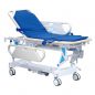 Тележка обладает плавным и бесшумным ходом на двухрядных роликах, оборудованных тормозами-фиксаторами. Механическая регулировка высоты с помощью винтового (червячного) привода и плавно поднимающееся изголовье на газлифте позволяют достичь оптимального позиционирования больного уже на начальном этапе госпитализации. Боковые ограждения, работающие по принципу ограждений на реанимационных кроватях, обеспечивают 100% безопасность больного и удобство его передислокации.