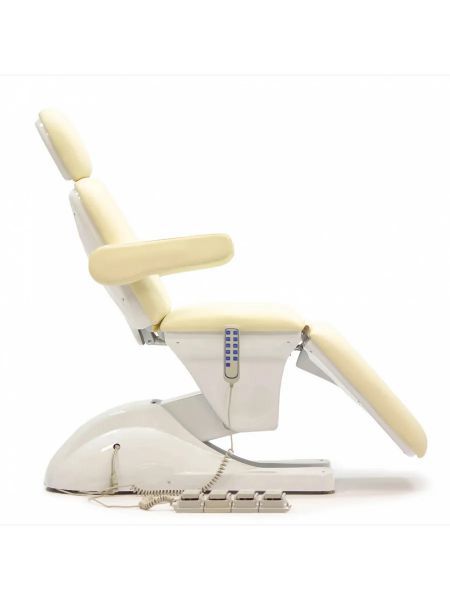 Электрическое кресло предназначено для проведения медицинских осмотров, диагностических процедур и сеансов массажа. Модель оснащена тремя функциональными секциями: спинной, тазобедренной и ножной. Спинная и ножная секции, а также высота сиденья регулируются с помощью пульта управления или ножных педалей.