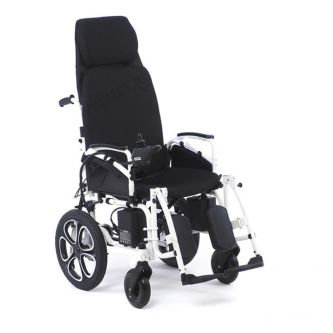 Инвалидная коляска с электроприводом, призванная облегчить жизнь людям с ограниченной подвижностью, обеспечить им максимальную автономность и самостоятельность. Пациент сможет перемещаться по дому и улице без сопровождающих, управляя креслом с помощью джойстика на подлокотнике. Кроме того, сидящий сможет сам управлять механизмом наклона спинки, не обращаясь за чьей-либо помощью. Модель складная, ее можно убрать в багажник авто, не демонтируя аккумуляторные батареи. Для ног предусмотрена удобная подставка с поддержкой стоп и голеней. Заряжаются аккумуляторы коляски от сети, что может создать неудобства при отключении света.
