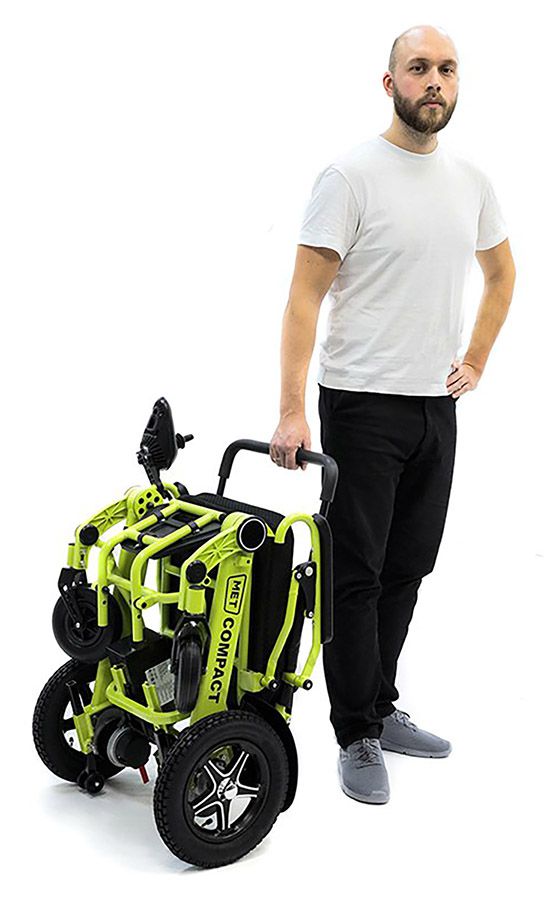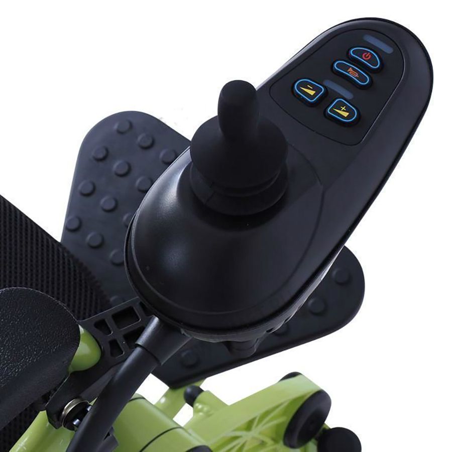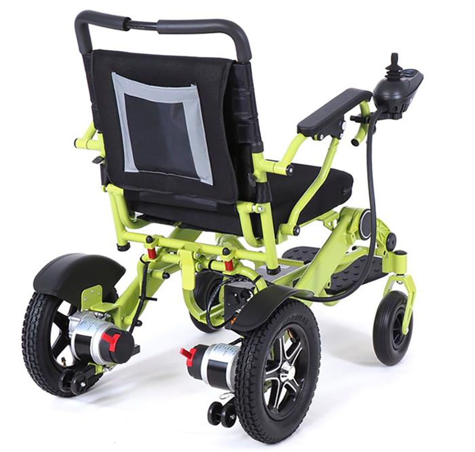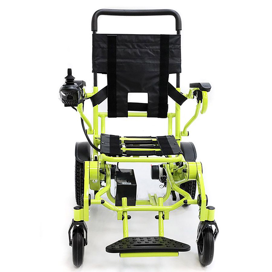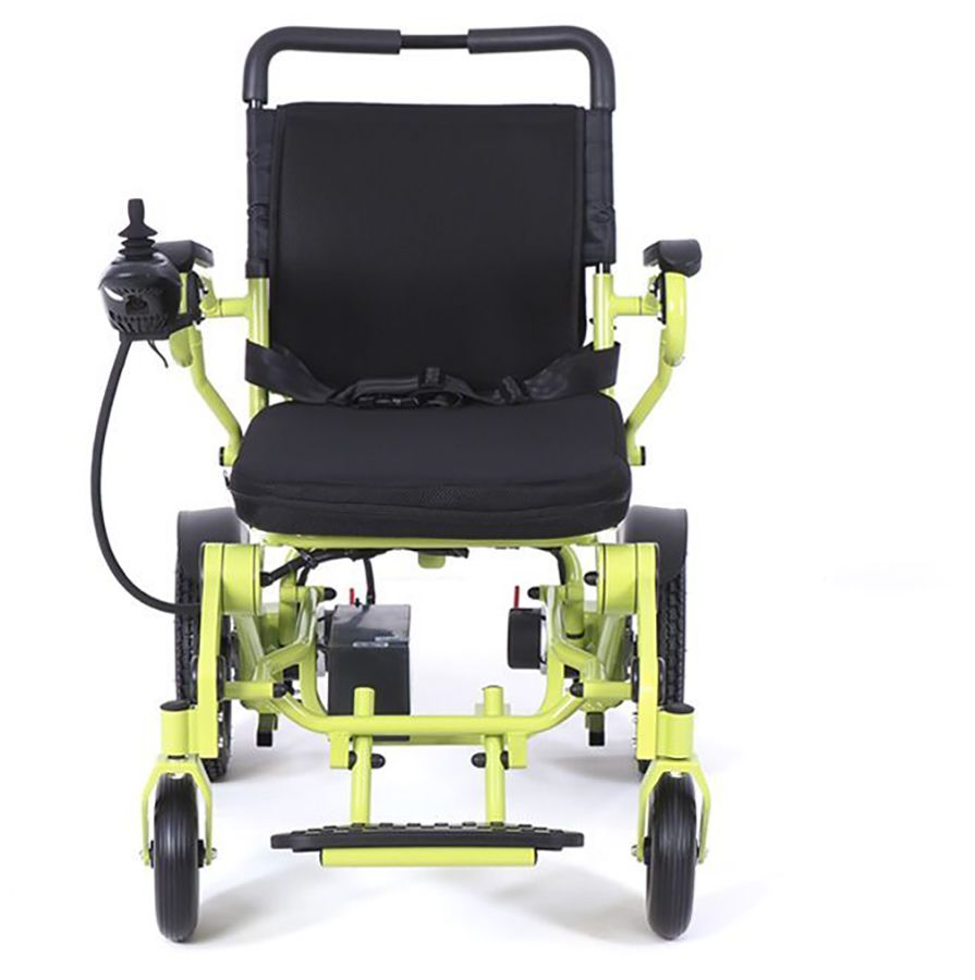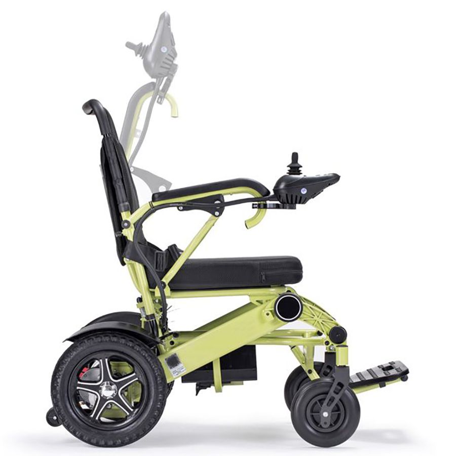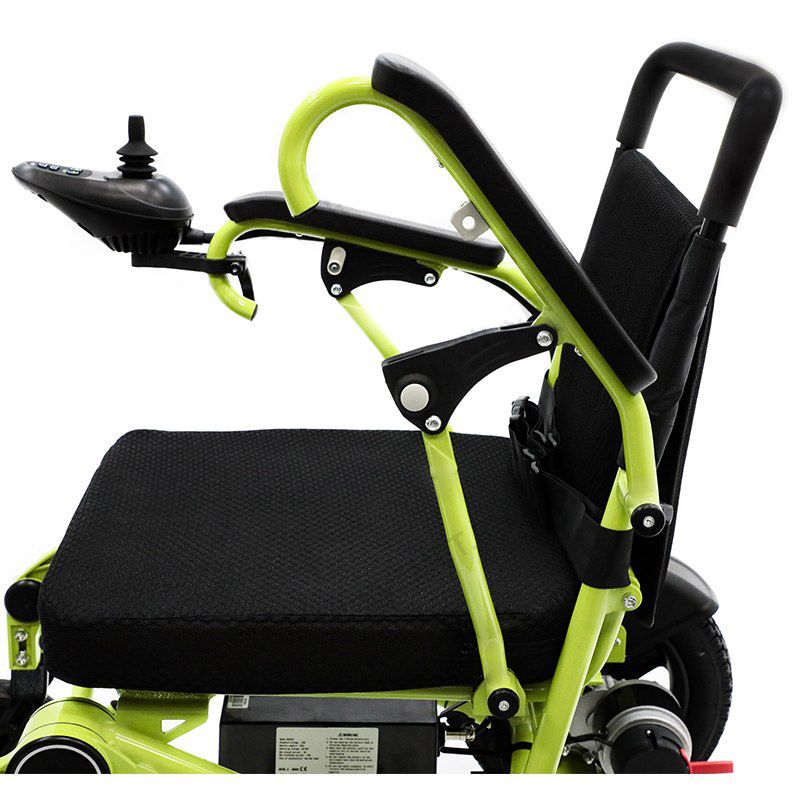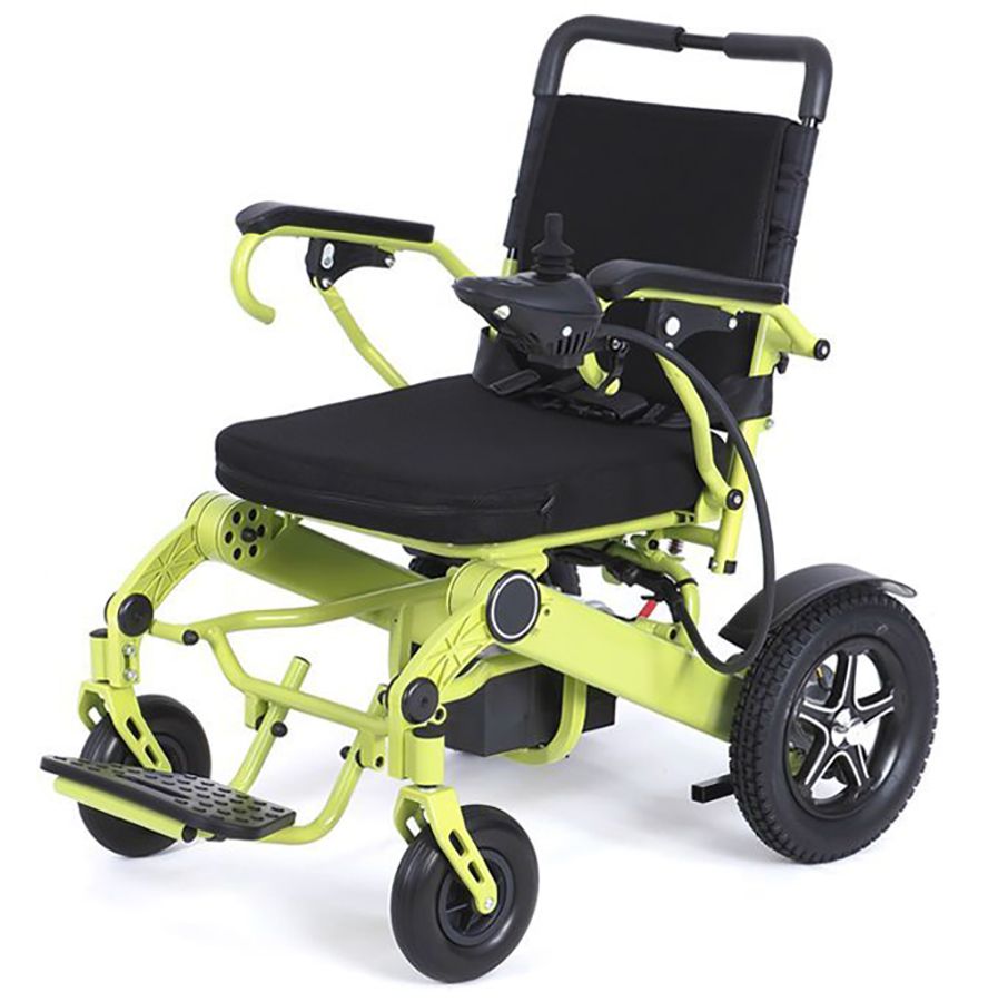 Компактное электрическое кресло-коляска со складывающейся рамой зелёного цвета