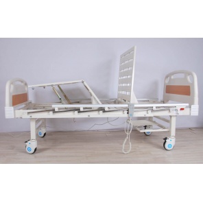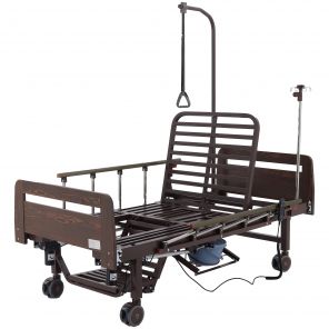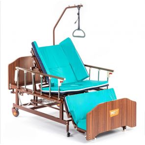 Удобная медицинская кровать, предназначенная для пациентов, вынужденных проводить в постели большую часть времени. Главное преимущество над аналогами - полная электризация модели. В кровати установлено 5 электроприводов, обеспечивающих подвижность всех ее элементов. Управление осуществляется с пульта, который постоянно находится под рукой у больного. Так, он сможет легко перевести сам себя в “кардиоположение”, подняв верхнюю секцию и опустив нижние к полу. Кроме того, в кровати предусмотрена функция переворачивания пациента. Ее можно и настроить на автоматическое срабатывание по таймеру, чтобы обслуживающим пациента людям можно было реже подходить к нему. В комплекте имеется прикроватный столик, упор для подтягивания, позволяющий человеку самостоятельно сесть, держатель для капельниц. Кровать лучше всего подходит для больниц, в меньшей степени - для домашнего уход за больным (в этом случае она может показаться дороговатой.)