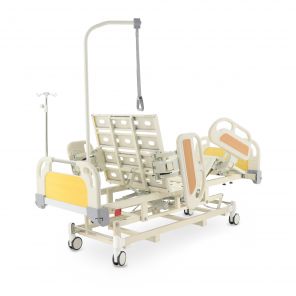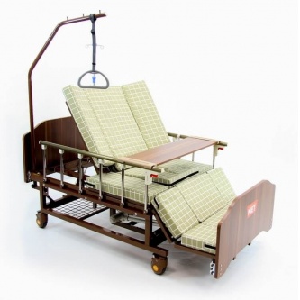 Медицинская кровать с ультрасовременным механизмом переворачивания, снабжённым таймером и позволяющим ночную смену положения больного без контроля ухаживающего лица, полноценным положением кардио-кресло, опускающим все ножные сегменты к полу и электроприводным санитарным оснащением, которое при определённой сохранности моторных функций пациента обеспечит ему максимальную автономность. без, в любом случае, действующей на нервы помощи ухаживающих лиц.