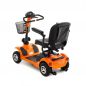 Электрический скутер снабжённый рулём мотоциклетного типа и поворотным сиденьем с откидывающимися подлокотниками, которое делает посадку и высадку из кресла элементарной даже для пользователей, имеющих ощутимые трудности с перемещением.