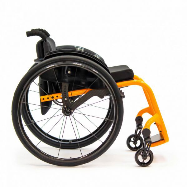 Коляска активного типа, сочетающая легкость и маневренность. Комбинация алюминиевой рамы и карбоновой оси с регулировкой развала обеспечивают коляске малый вес и легкость хода.
