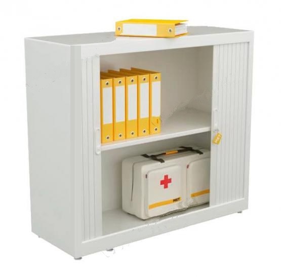 Моноблочная сварная конструкция. Створки из негорючего полимера с металлической запираемой скобой. Порошковая эпоксидная покраска с текстурой, защищающей от царапин. Под заказ от 10 шт (если необходимо менее 10 шт обратите внимание на шкаф с роллетами шириной 120 см, их можно заказывать от 1 шт). Регулируемые по высоте полки (шаг 35мм) с металлическими держателями. Нижняя сторона полок с креплением для хранения подвесных файлов. Мягкое бесшумное скольжение створок.Замок со сменным цилиндром (2 ключа, один из которых складной).