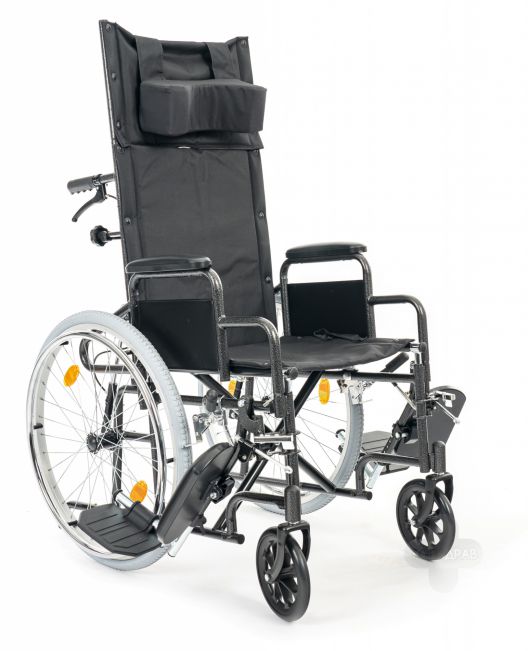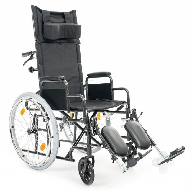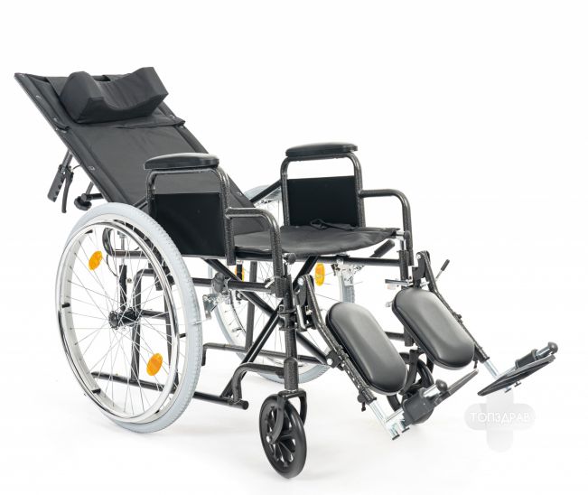 Кресло-коляска с удлинённой, опускающейся в горизонталь спинкой и поднимающимися ортопедическими подножками