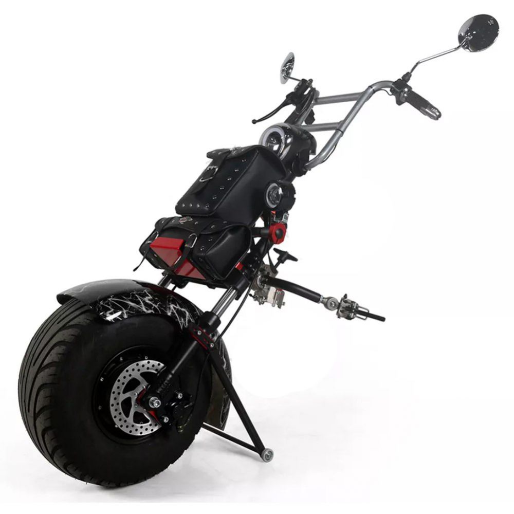 Самый комфортный за счёт наиболее широкой покрышки и элегантный за счёт мотоциклетного руля чопперного типа вариант среди наших электроприводов. 1500W мощное и приёмистое мотор-колесо и самый большой запас хода за счёт вместительного 16 А/ч аккумулятора. Эластомерная аммортизационная вилка и оптический комплект полноценного ТС.