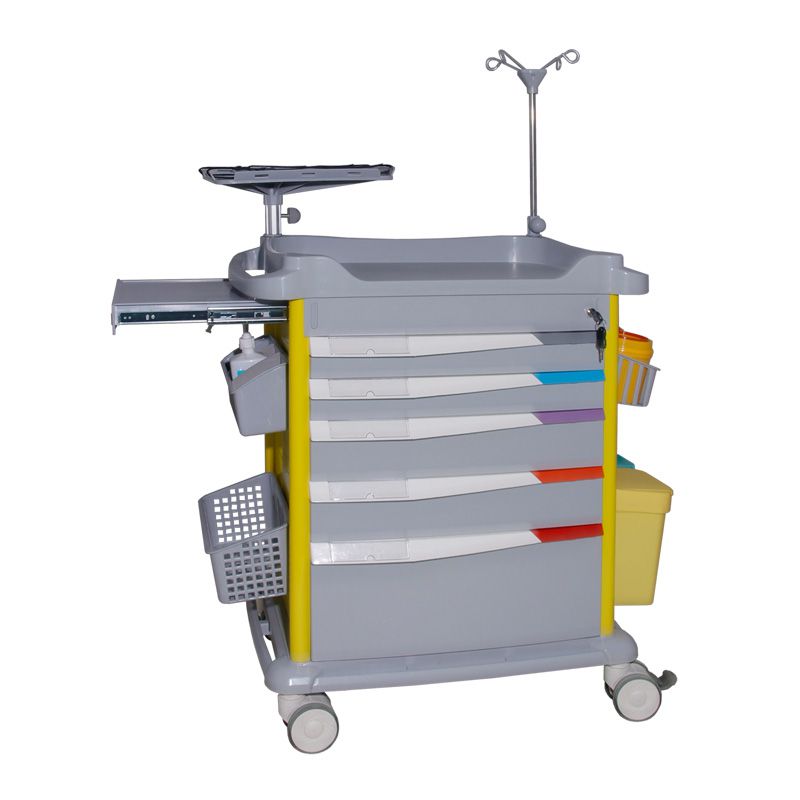 Реанимационная тележка MET PSC-160 (17458) внутрибольничной скорой помощи, снабжённая цветовой кодировкой ящиков для быстрого и понятного пользования. Материал - ABS-пластик на пластиковом каркасе. Рукоятки для транспортировки с обоих торцов реанимационого столика. Топ из объёмноформованного ABS с выпрессованой 3-сторонней отбортовкой. Выдвижная полка для центрального блока дефибриллятора. Экранированная полочка для электродов дефибриллятора.