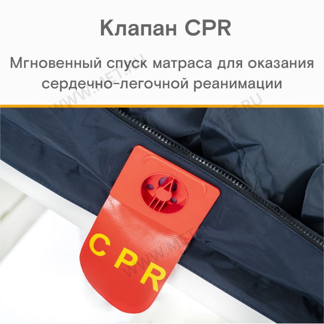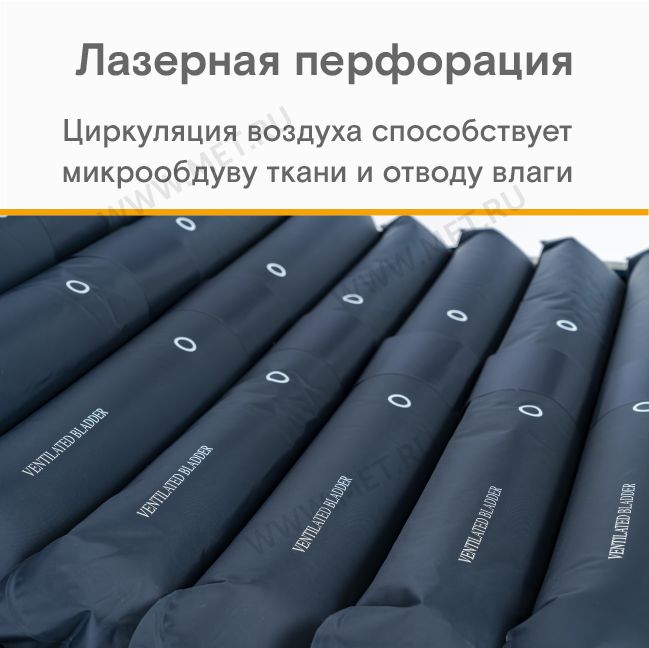 Противопролежневая система с микропроцессорным датчиком распределения веса, самостоятельно регулирует давления в ячейках в зависимости от положения тела пациента с комфортной поверхностью, состоящей из 18 поочерёдно надувающихся секций.