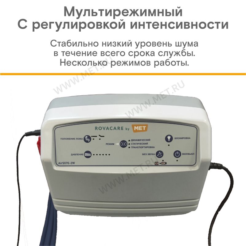 Пневматическая противопролежневая система с компрессором, легко настраивающимся с помощью простых сенсорных кнопок, которые можно использовать для регулировки давления. Функция режима ухода облегчает уход за пациентом и его перемещение. Компрессор имеет несколько функций безопасности: звуковые и визуальные сигналы при низком давлении, сбоях электропитания, а также функции комфортного положения, выбор программ и функцию блокировки для предотвращения случайных нажатий. Компрессорный модуль имеет динамические рабочие характеристики, обеспечивающие идеальное распределение давления для пациента.
