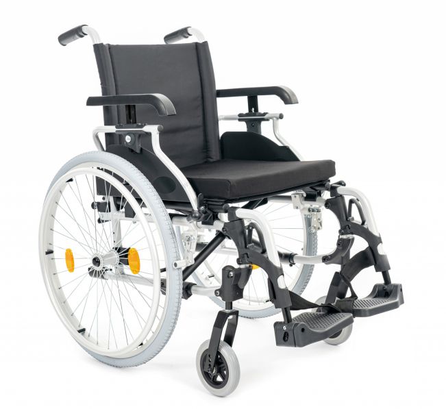 Кресло-коляска МЕТ STABLE обладает великолепным качеством исполнения. Повседневное кресло-коляска для активных пользователей. Алюминиевая рама складывающаяся "сторона к стороне" посредством складного х-образного механизма, обладает минимальным для повседневного кресла-коляски весом. Сиденье шириной 43 см изготовленo из нейлона, обладающего водоотталкивающими свойствами и снащено дополнительной противопролежневой подушкой со съёмным чехлом на молнии. Откидные подлокотники, регулируемые по высоте, с поручнями из цельных кусков пенополиуретана, оборудованы матовыми боковыми стенками.