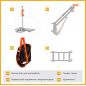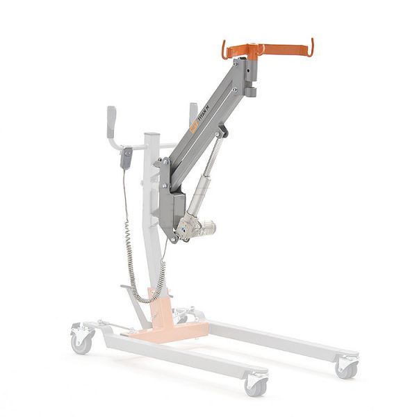Переносной модульный подъемник - оснащен встроенным аккумулятором и пультом управления на длинном витом шнуре. Диапазон изменения высоты 50 см. Итоговая высота зависит от используемого кронштейна, посадки в гамаке и антропометрических данных пользователя. Грузоподъемность подъемника 150 кг (без калитки удлинителя). Принципиально другая посадка в сравнении с классическими подъемниками, траверса располагается не над человеком, а в районе груди.