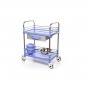 Манипуляционный двухполочный столик с выдвижным ящиком под верхней полкой, а так же тазом для отходов и мусорным ведром, закреплёнными на П-образных торцевых стойках из стали. Четырёхсторонние выпрессованные отбортовки на обеих полках. Высокие трёхсторонние ограждения из стального прутка для высоких предметов. Таз из нержавейки на подвижном кронщтейне, установленном на стальную стойку. Пластиковое мусорное ведро на подвижном кронщтейне, установленном на стальную стойку.