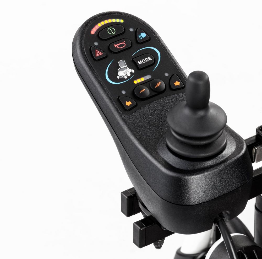 Новая, быстрая электрическая коляска, для комнатного и внедорожного использования, впечатляет своими сложными функциями и свежим дизайном. Полная амортизация рамы, задней подвески, а также новая система монтажа вилок передних колес повышает комфорт использования на различной местности и в разных условиях. Компактные размеры с интегрированными роликами-антиопрокидывателями позволяют коляске легко двигаться в ограниченном пространстве. Электрический лифт (опция) поднимает сиденье на 300 мм, что облегчает доступ к объектам расположенным на большой высоте. Управлять коляской легко и удобно, она оснащена пультом, который может быть установлен с левой или правой стороны.