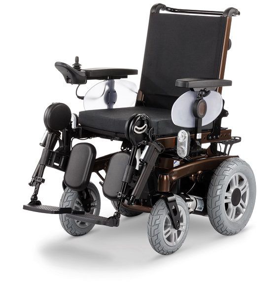 Быстрая электрическая коляска для комнатного и внедорожного использования впечатляет своими сложными функциями и свежим дизайном. Полная амортизация рамы, задней подвески, а также новая система монтажа вилок передних колес повышает комфорт использования на различной местности и в разных условиях. Компактные размеры с интегрированными роликами-антиопрокидывателями позволяют коляске легко двигаться в ограниченном пространстве. Электрический лифт (опция) поднимает сиденье на 300 мм, что облегчает доступ к объектам расположенным на большой высоте. Многочисленные типы драйверов для видов инвалидности.