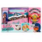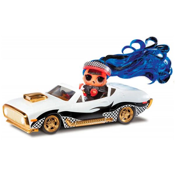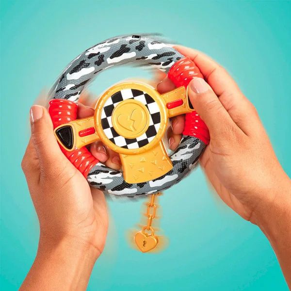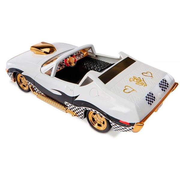 Крутой автомобиль на дистанционном управлении для куколки LOL Surprise J.K. Downtown. Открытый кадиллак белоснежного цвета, рельефными деталями, золотистыми железными вставками на кузове, тюнингом из черных волн и шахматного узора передвигается на 4-х колесах, имеет красивый кожаный черный салон и блестящую панель управления с маленьким рулем. Управляется необычным пультом в виде руля с двумя кнопками. Поворачивая руль вправо или влево, можно двигать машину в разные стороны. А нажимая на 2 кнопки, управлять движением вперед и назад. В салон можно посадить куколку.