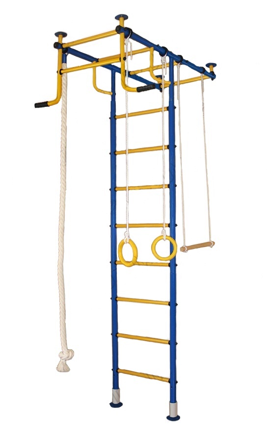 Достоинства: крепление комплекса между потолком и полом, поэтому при необходимости его можно собрать и убрать вообще, либо переставить в другое место, а дырок при этом не останется.