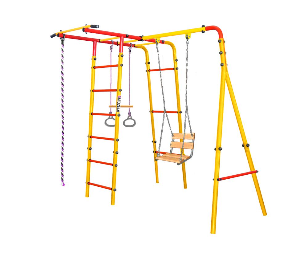 Уличный детский спортивный комплекс Mori Universal - это спортивный комплекс с прочной металлической конструкцией, позволяет выдерживать до 100 кг. Крепление комплекса осуществляется с помощью бетонирования. Mori Universal состоит из каркаса двух металлических лестниц с рукоходом, турника, навесных цепных качелей, каната и колец с перекладиной.
