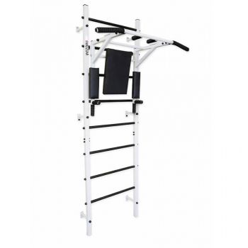 Okami - универсальная модель оборудована многофункциональным турником 3в1 (турник+брусья+пресс), с помощью которого можно работать с разными группами мышц не привлекая дополнительное оборудование. Белое исполнение шведской стенки в сочетании с черными прорезиненными ступенями и хватами не только защитит руки от скольжения, но и выглядит практично. Прочная металлическая конструкция позволяет выдерживать нагрузку до 250 кг. Рассчитан в первую очень на занятия взрослому, но возможно заниматься и ребенку.