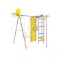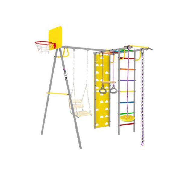 Спортивно-игровой комплекс используется для установки на детских площадках или на придомовой территории путем бетонирования. Устройство оснащено большим количеством спортивных снарядов и локаций, включая лестницу, скалодром, качели, канат, баскетбольную корзину и кольца. Основа конструкции – металлическая труба, покрытая атмосферостойкой эмалью. Остальные материалы также устойчивы к перепадам температур и воздействию влаги.