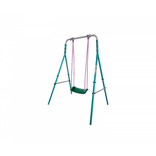 Satoru – уличные качели с прочным металлическим каркасом, который может выдерживать нагрузку до 100 кг. На каркас подвешены при помощи водостойкого полиамидного шнура качели с широким пластиковым сидением.