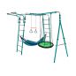 Детский спортивный комплекс Midzumi Yokina Ko Umi Large XL состоит из каркаса двух металлических лестниц с рукоходом, передвижного турника, навесных качелей-гнездо, подвесного гамака, каната и колец с перекладиной. Прочная металлическая конструкция позволяет выдерживать до 100 кг. Крепление комплекса осуществляется с помощью бетонирования.