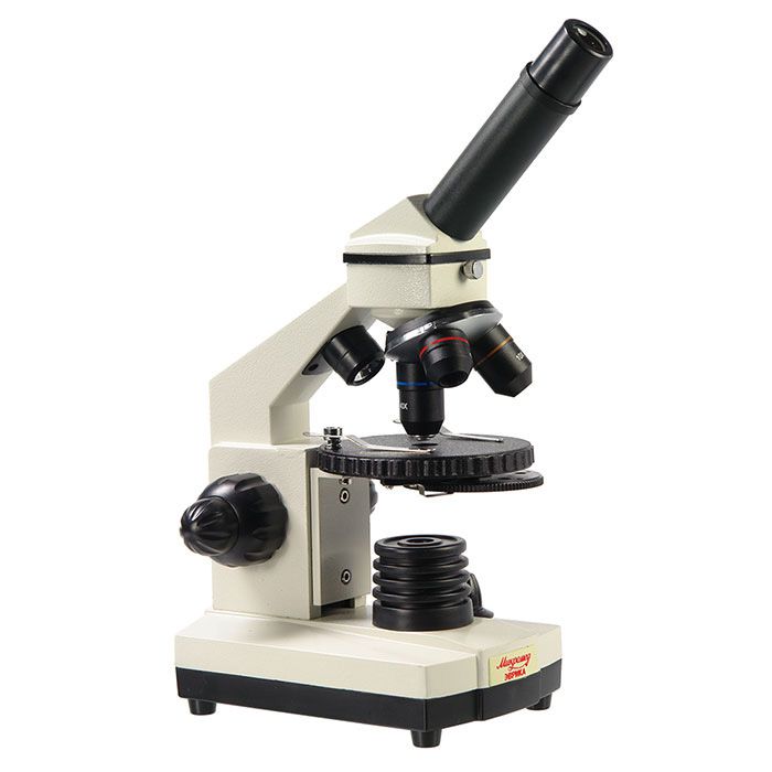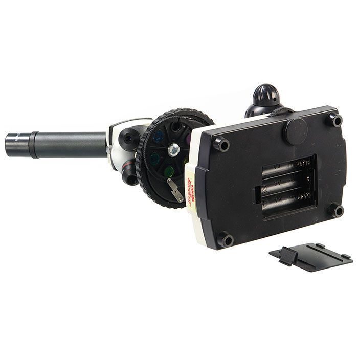 Оснащен встроенными осветителями, которые работают от сети переменного тока 220В и от трех батареек типа АА. Универсальность питания осветительной системы позволяет использовать микроскоп и в домашних условиях, и в учебных классах и в походных условиях. А удобный компактный кейс обеспечивает сохранность оптического прибора при переноске.