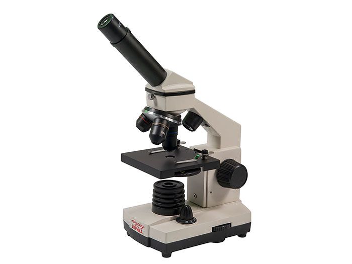 Несмотря на то, что микроскоп детский, Микромед снабжен встроенными светодиодными осветителями, которые позволяют изучать препараты в проходящем и отраженном свете. Нижняя подсветка используется для наблюдения прозрачных микропрепаратов. Диафрагмы со светофильтрами дают возможность изменять степень освещенности препарата.
