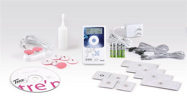 Несмотря на то, что прибор имеет два активных выхода, одновременно поддерживается только одна программа. Также стоит отметить, что электроды на клейкой основе довольно быстро загрязняются, поэтому необходимо регулярно приобретать новые. Массажер-миостимулятор Vupiesse Tua Trend Face&Body предназначен для комплексного воздействия на все участки тела. Прибор может генерировать два вида токовых импульсов. Первый — симметричный, прямоугольный, двухфазный используется для миостимуляции тела, второй — синусоидальный, модулированный ток применяется на чувствительных участках лица и шеи. Массажер имеет сравнительно небольшой размер и работает от от сети. На дисплее устройства отображается актуальная информация о ходе процедуры и уровень заряда батареи.