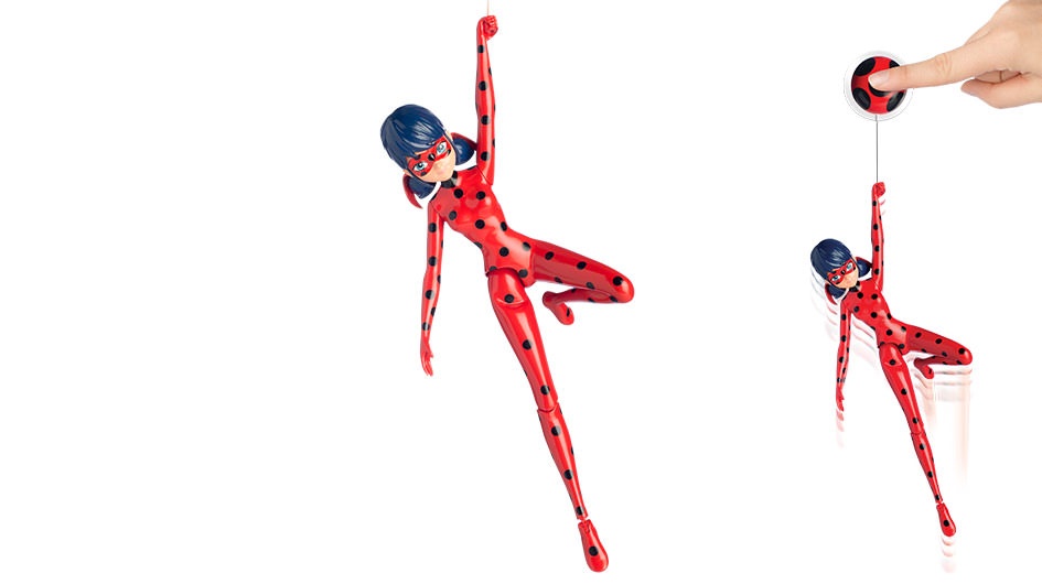 Миниатюрная куколка исполнена точной копией супергероини Леди Баг из знаменитого мультфильма. Фигурка исполнена в ярком костюме божьей коровки, подробно и тщательно детализирована и впечатляет демонстрацией супер возможностей своей экранной героини. Благодаря присоске с пусковым механизмом фигурка может совершать невероятные прыжки, что позволит детям разыграть любимые сцены из мультфильма.