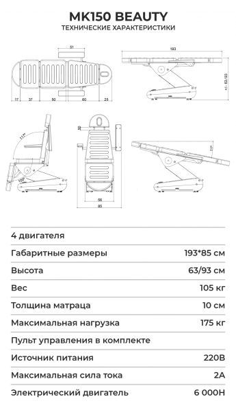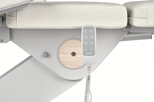 Инновационная кушетка с 4-мя двигателями, максимальной устойчивостью и сверхкомпактным основанием. Корпус основания — сталь! Двигатели позволяют легко регулировать спинку, подножку, высоту и положение угла наклона кресла с помощью пульта ручного управления.