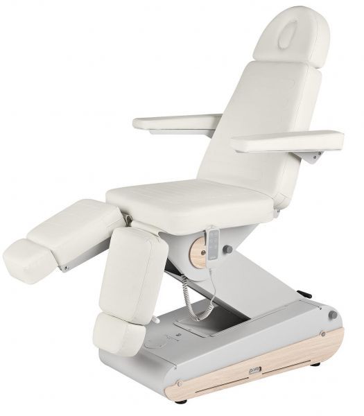 P150 EL SOBERANO: инновационное педикюрное кресло с 3-мя двигателями, максимальной устойчивостью и сверхкомпактным основанием. Двигатели позволяют легко регулировать спинку, высоту и положение угла наклона кресла с помощью пульта ручного управления, ножные секции регулируются пневматикой. Корпус основания — сталь! Кресло P150 в стандартной комплектации оснащено белой светодиодной подсветкой в основании и системой передвижения с 4-мя колесами, поворачивающейся на 360 °, которую можно заблокировать и разблокировать с помощью рычага в основании!