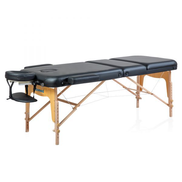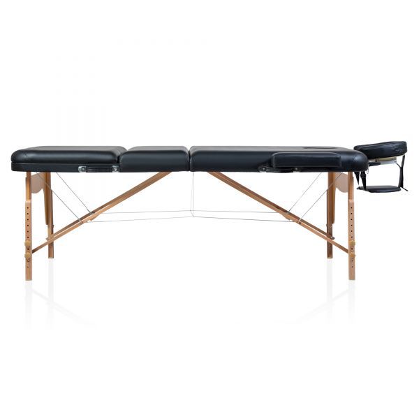 Массажный складной стол Premium 3 black — профессиональный стол с дополнительными функциями, такими как подлокотник, вырез для лица и подголовник. Также имеется полка для рук и сумка для переноски.