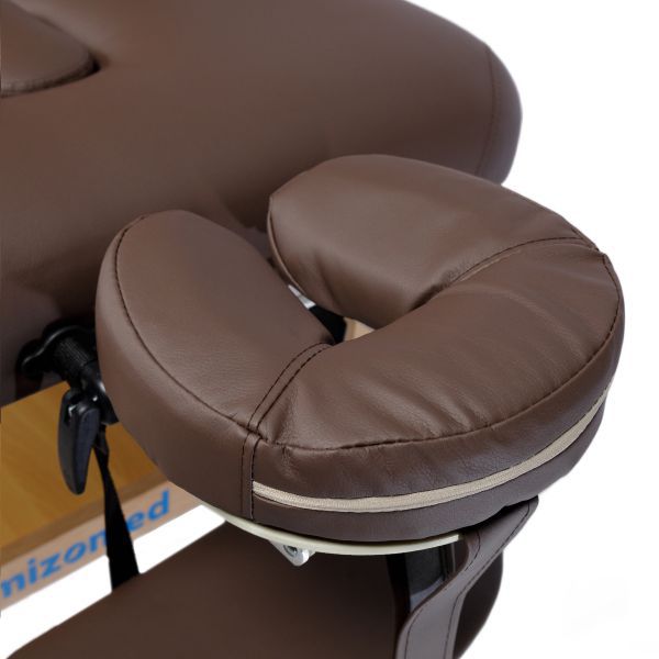 Мягкое наполнение из пенополиуретана толщиной 7 см гарантирует максимальный комфорт для клиента. Вырез для лица и съёмный подголовник диаметром 28 см добавляют удобства в использовании.