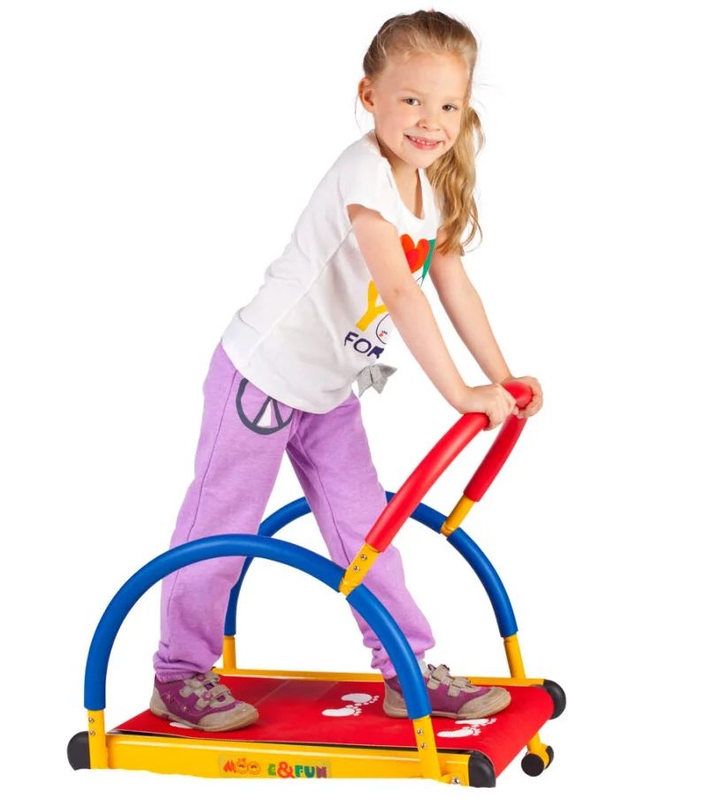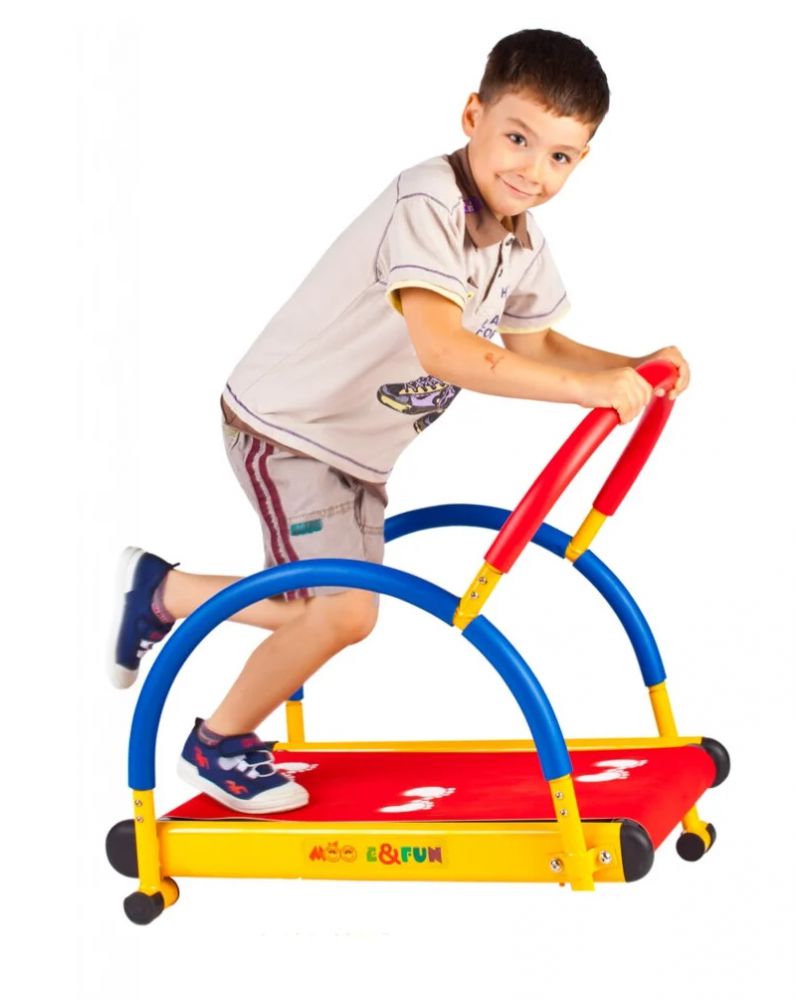 Эргономика беговой дорожки специально разрабатывалась для детей. Плотное антистатическое полотно. Оснащается компьютером-счетчиком c персонажем (зайчиком), являющимся дополнительным стимулом. Механическая детская беговая дорожка оригинального дизайна идеально подходит для проведения тренировок детей в игровой форме.