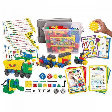 Конструктор Gearphun Junior Combined 480 Set упакован в ударопрочный пластиковый короб с крышкой и удобной ручкой для переноски и хранения деталей.