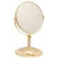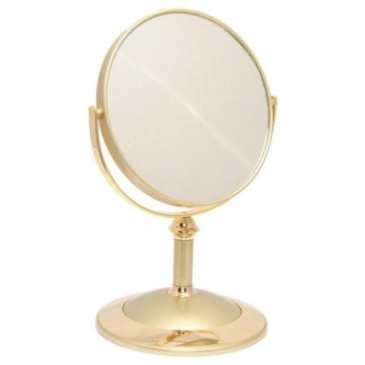 Прибор имеет две зеркальные поверхности - стандартную, и с 5-ти кратным увеличением. Такое увеличение оптимально подходит для нанесения макияжа и гигиенических процедур. Особенностью данной модели зеркала является золотой цвет деталей, что добавляет роскоши и вписывает его в любой интерьер.