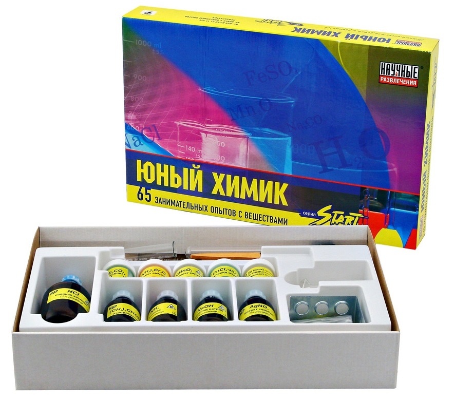 Набор «Юный химик» позволит вашему ребенку сделать первые шаги в познании такой науки как химия. Этот процесс позволит не только получить новые знания, но и обеспечит отличным настроением, подарит массу положительных эмоций и впечатлений. Всего можно будет проделать 65 опытов.