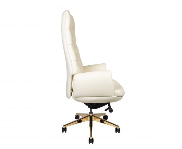 Высококачественное классическое кресло руководителя. First class. Кожа Top Grain. Синхро механизм по лицензии Donati (Италия) Регулировка жесткости качания под весом сидящего. Фиксация в четырех положениях. Подлокотники кожа. Крестовина алюминий золотого цвета. Ролики из полиуретана.