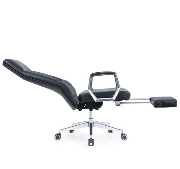 Кресло Norden Ронин предназначено для меблировки офисов и современных домашних кабинетов. Модель оснащена высокой спинкой с подголовником и выдвижной опорой для ног. Механизм качения с фиксацией в многих положениях. Обивка спинки и сиденья выполнена из экокожи.