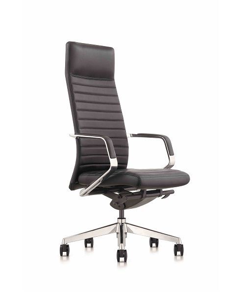 Кресло руководителя First class. Сиденье и спинка - формованное PPU с обивкой из натуральной кожи. Подлокотники - полированный алюминий с накладками из кожи. Модель имеет механизм качания с асинхронным отклонением сидения и спинки в соотношении 1:3. Фиксация в любом положении. Регулировка высоты. Регулировка жесткости качания.