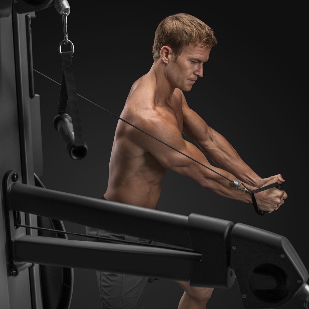 Четыре пары роликов, расположенные в верхней, средней и нижней частях тренажера, а так же независимые троса длиной 2.4 м (95") каждый создают неограниченные возможности для достижения ваших целей.