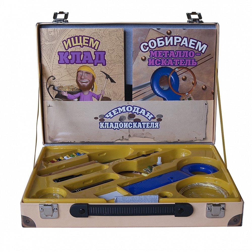 Игровой набор "Чемодан кладоискателя" приведет в восторг любого ребенка, любящего приключенческие сюжеты игр. Данный замечательный набор содержит в себе все, что нужно для поиска клада, включая две красочные книжки с подробными иллюстрированными инструкциями. Следуя схеме, ребенок может самостоятельно собрать металлоискатель, без которого не обойдется ни одно поисковое мероприятие. Набор можно брать на природу, где игра ребят будет максимально реалистичной.