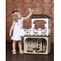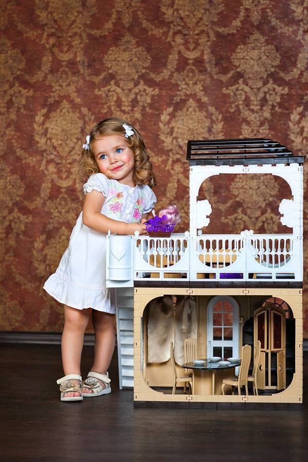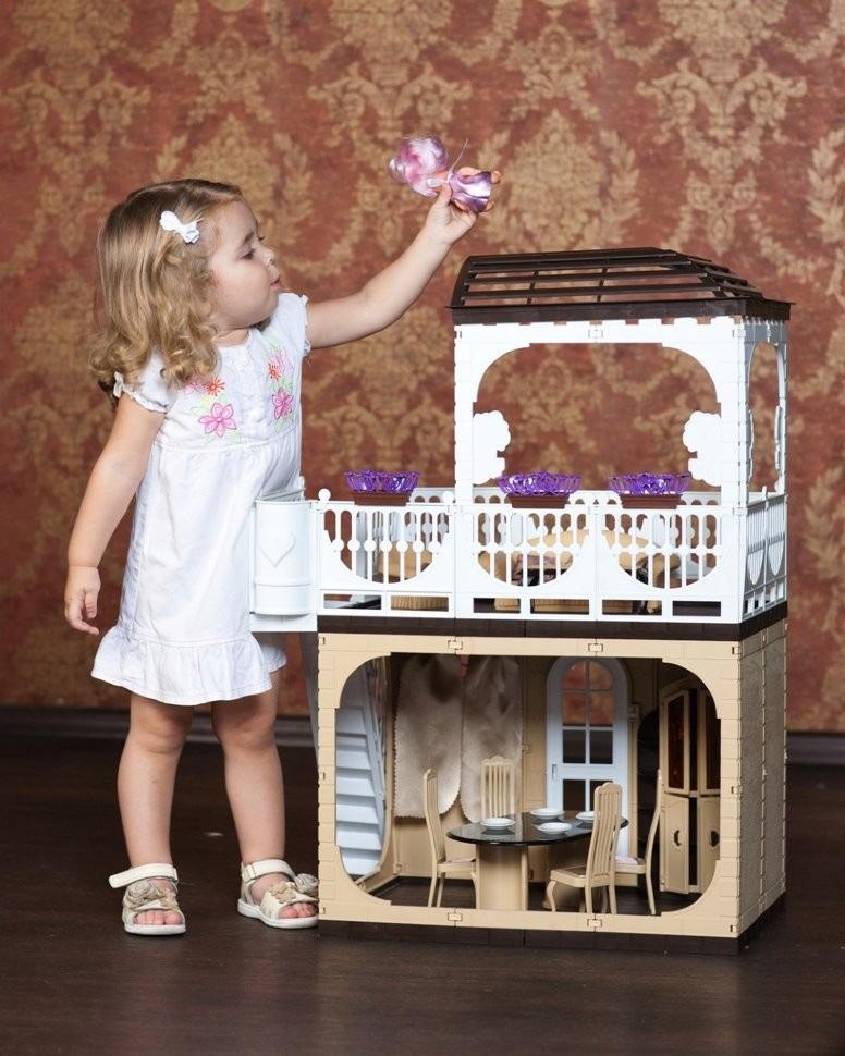 Огромный кукольный дом из пластмассы от старейшего отечественного производителя игрушек. Дом выдержан в спокойных кофейных тонах, обставить его интерьер можно дополнительными наборами мебели - гостиная, мягкая мебель, кухня и спальня. Еще можно самостоятельно изготовить ковры, дорожки, шторы, картины. Дом собирается прочный и долговечный, в нем можно мыть полы и протирать пыль. Передняя и левая стенки просто проемы, чтобы кукловод имел доступ к обитателям дома.
